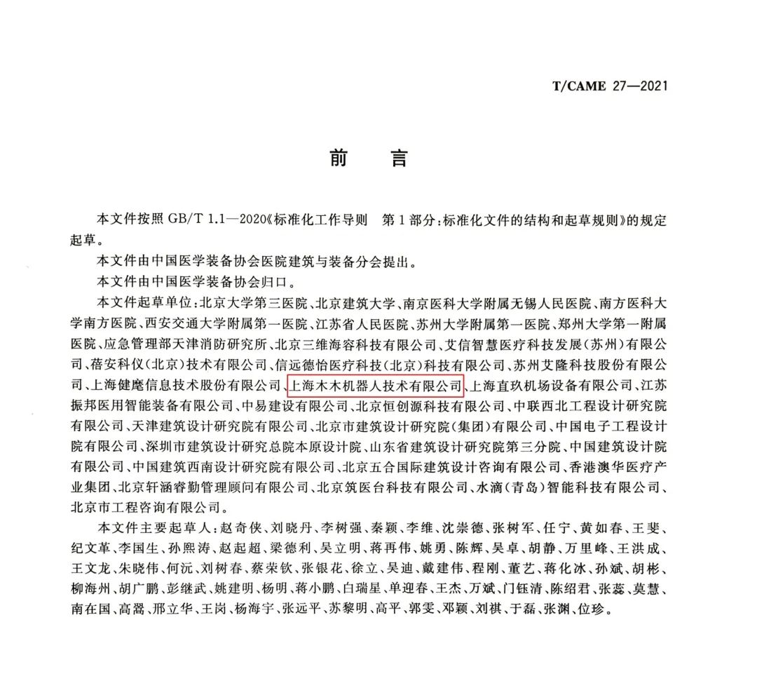 诺亚医院物流机器人是平台孵化企业上海智蕙林医疗科技有限公司(以下简称“智蕙林”)旗下品牌,本次作为标准起草单位之一,全程参与了探索、实践、总结、起草等工作,该标准的正式发布实施,对于规范医院物流传输系统设计与施工具有重要的引领和指导作用。